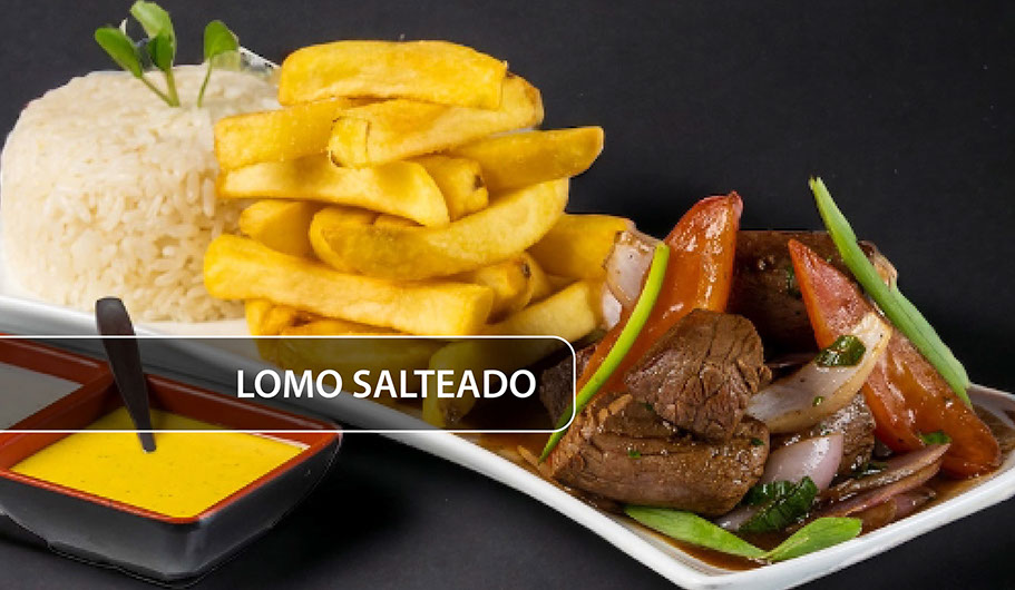 Trozos De Filete De Vacuno Salteados Al Wok Con Tomate, Cebolla Y Los Toques De La Casa Acompañados Con Arroz Blanco Y Papas Fritas.