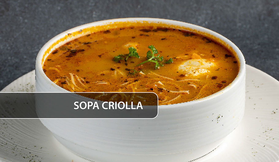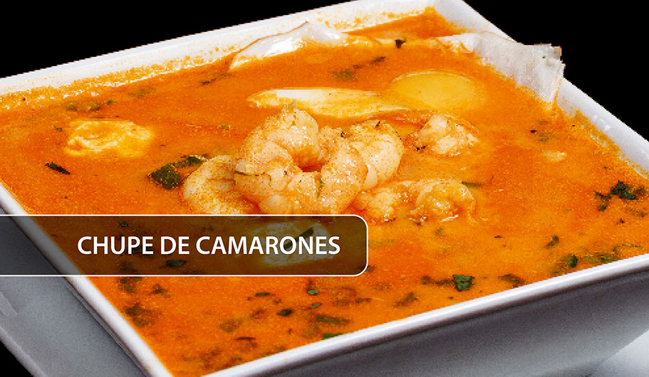 Sopa Con Camarones, Papa Amarilla, Choclo Peruano, Leche, Arroz Y Huevo Escalfado.