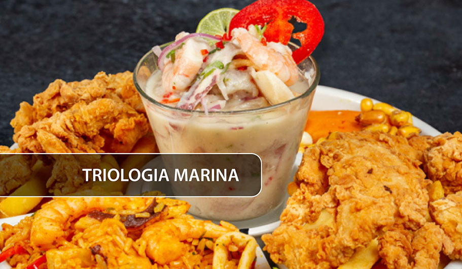 Nuestro delicioso ceviche clásico, arroz con mariscos y chicharrón de pescado.