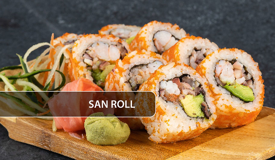 Kanikama, Salmón, Queso crema, Masago, apanado en Panko y salsa Thai.