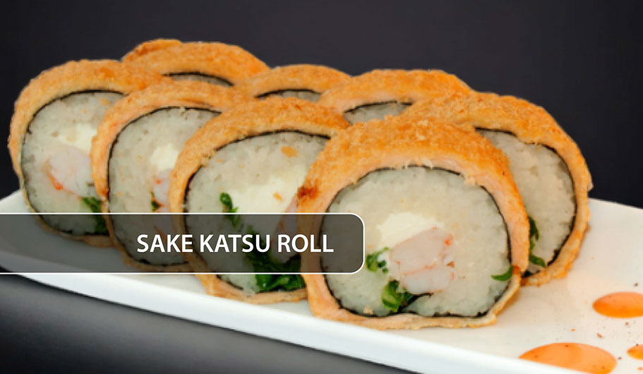 Camarón, queso crema, cebollín, envuelto en salmón apanado en panko.