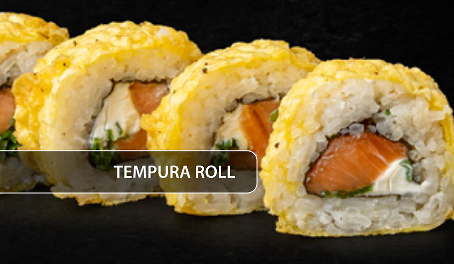 Salmón, queso crema, cebollín envuelto en masa tempura.