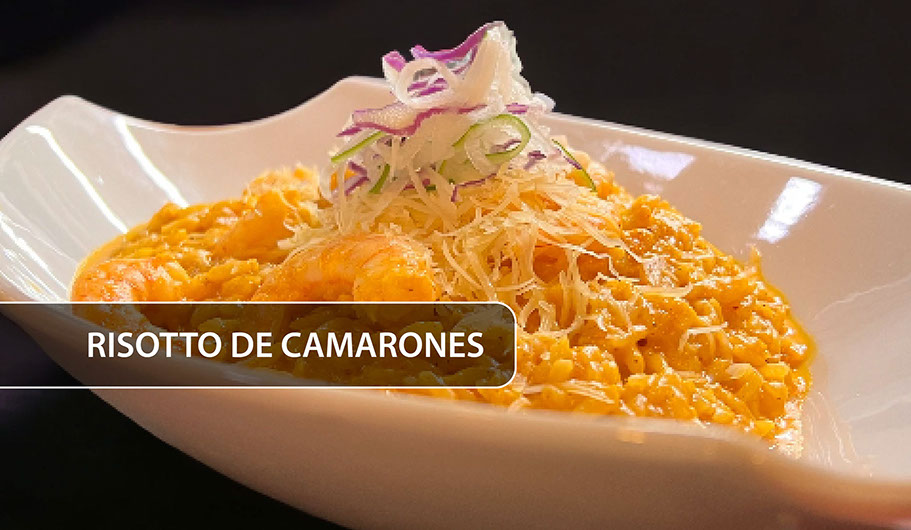 Arroz cremoso con camarones, mantequilla, crema de leche, parmesano y salsa de camarones.