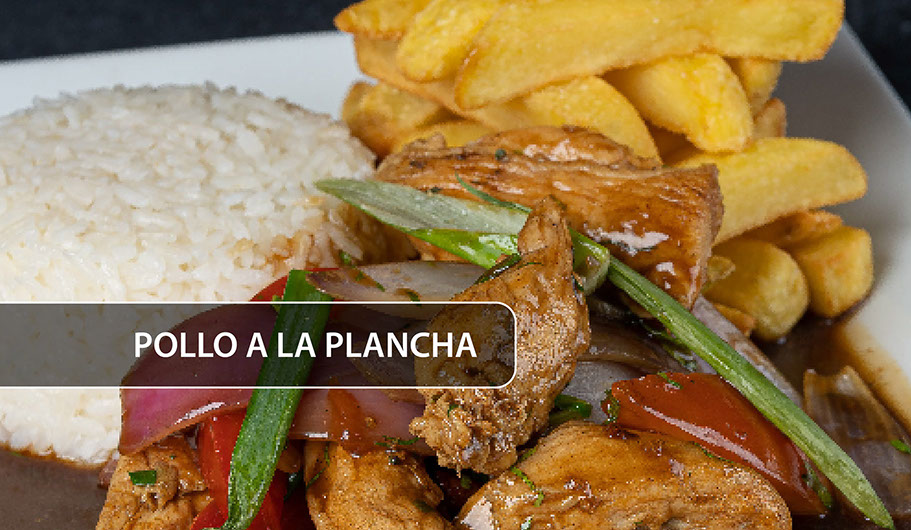 Trozos De Filete De Pollo Salteados Al Wok Con Tomate, Cebolla Y Los Toques De La Casa Acompañados Con Arroz Blanco Y Papas Fritas.