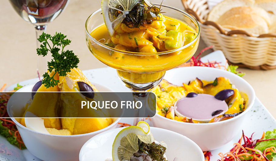 Una explosión de sabores ceviche de pescado, causa de ave en salsa huancaína, pulpo al olivo y coctel de camarones.